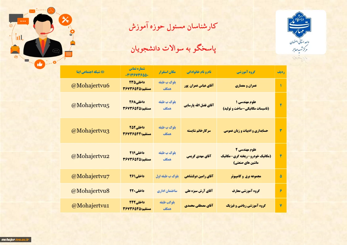 کارشناسان راهنما و پاسخگو به سوالات دانشجویان 2